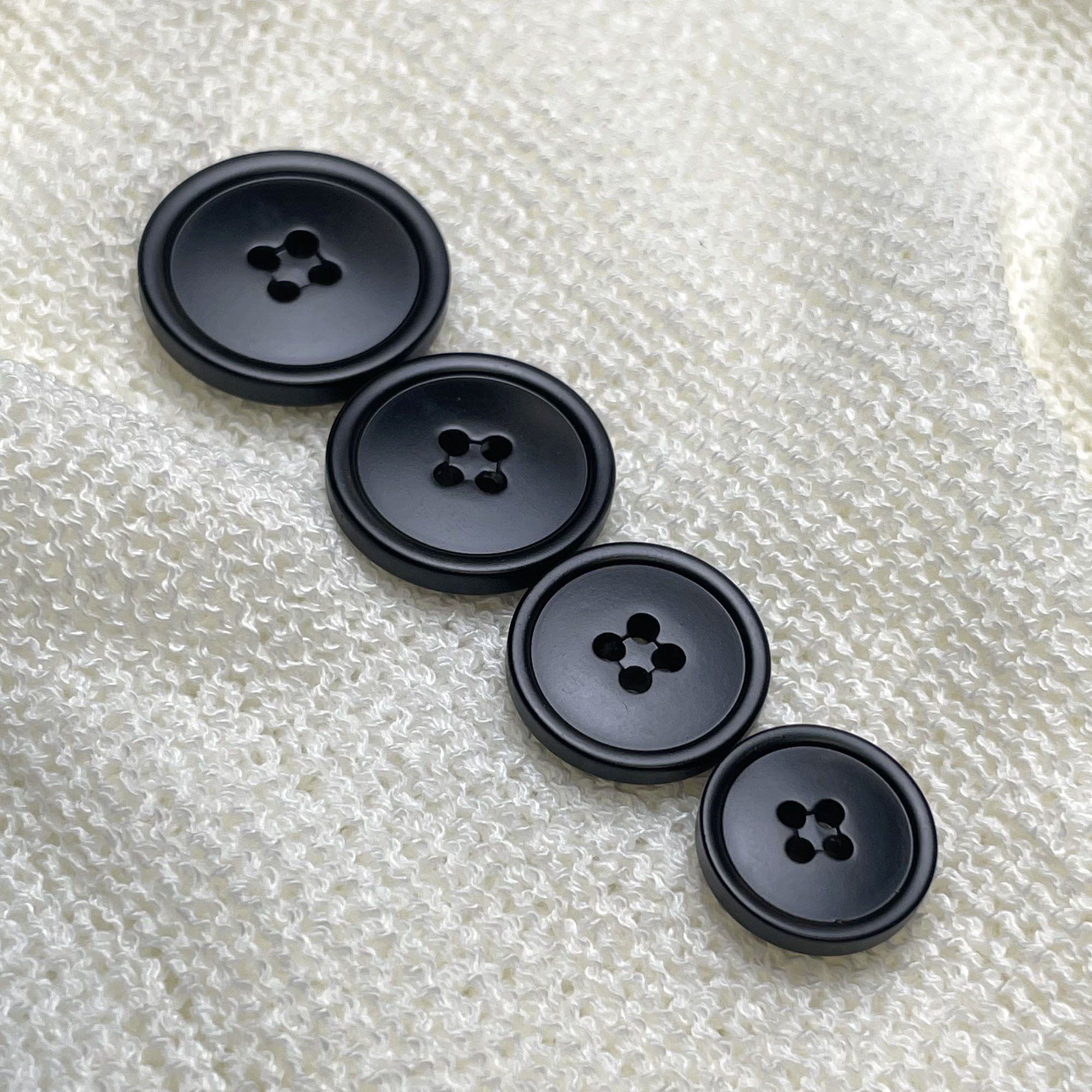 Solid Black Corozo Suit Button, 4Holes, BTC1206-24L, 28L, 32L, 36L