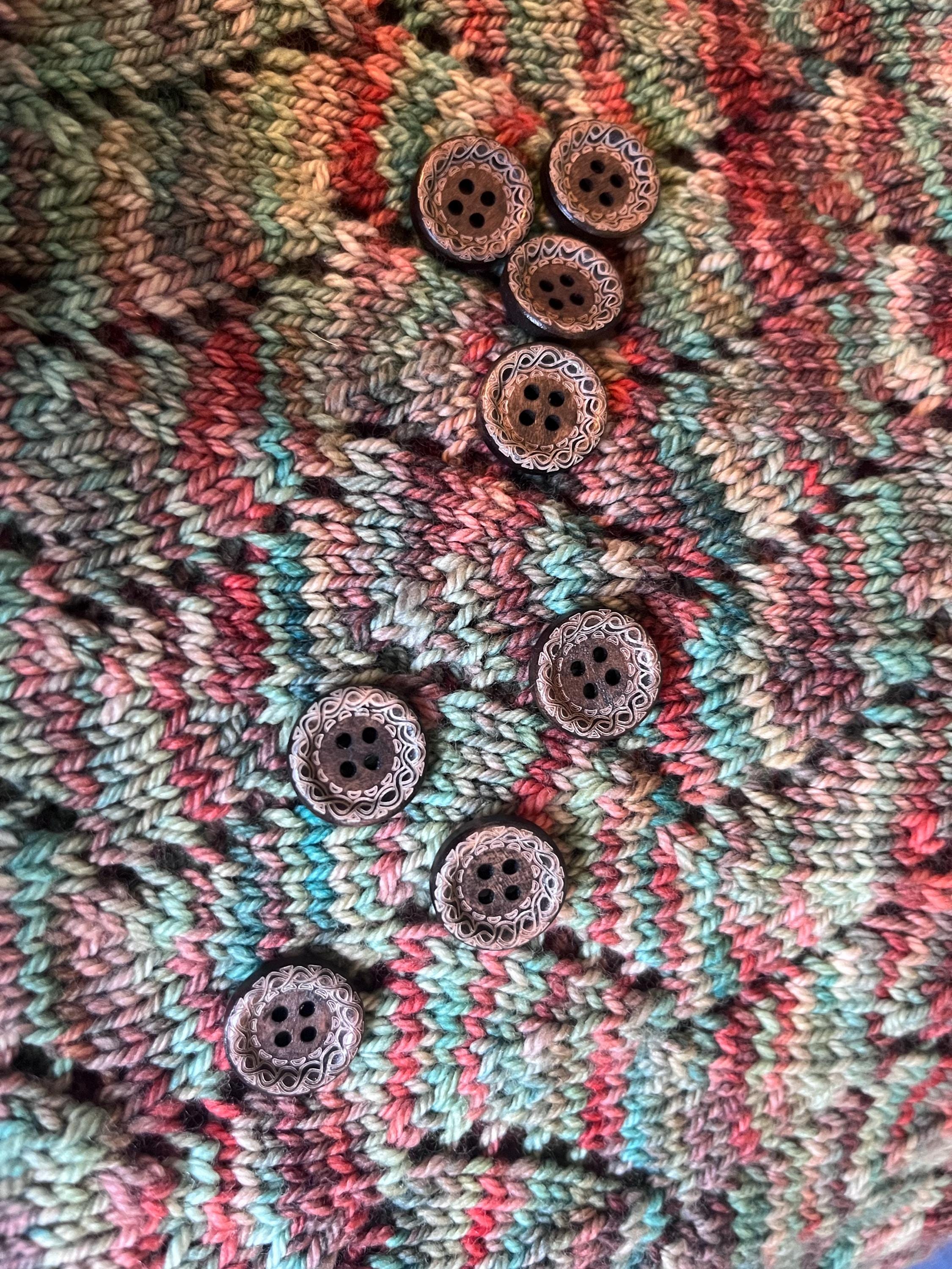 I got these buttons to pull together a knitted poncho. The colors are as described and will go nicely with my poncho. Very happy!