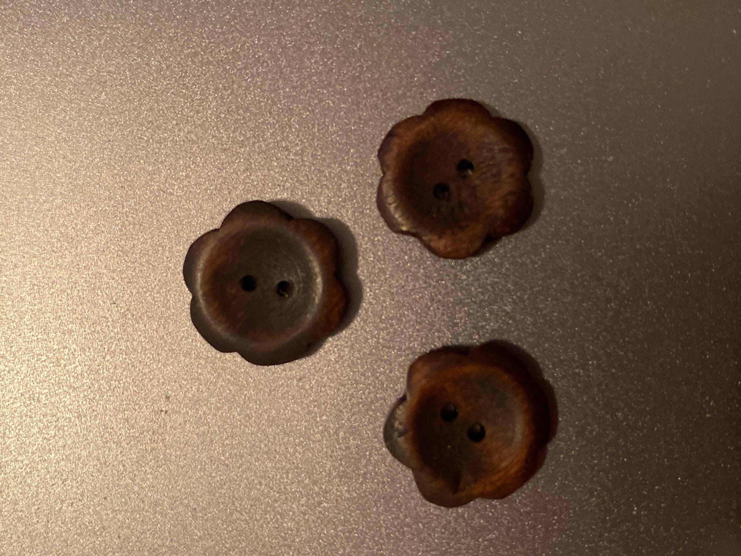 Wood Button Flower Assortment - 34Ligne (15.3mm, 0.6inch), Dark Brown (Button 3) - Selling per Piece