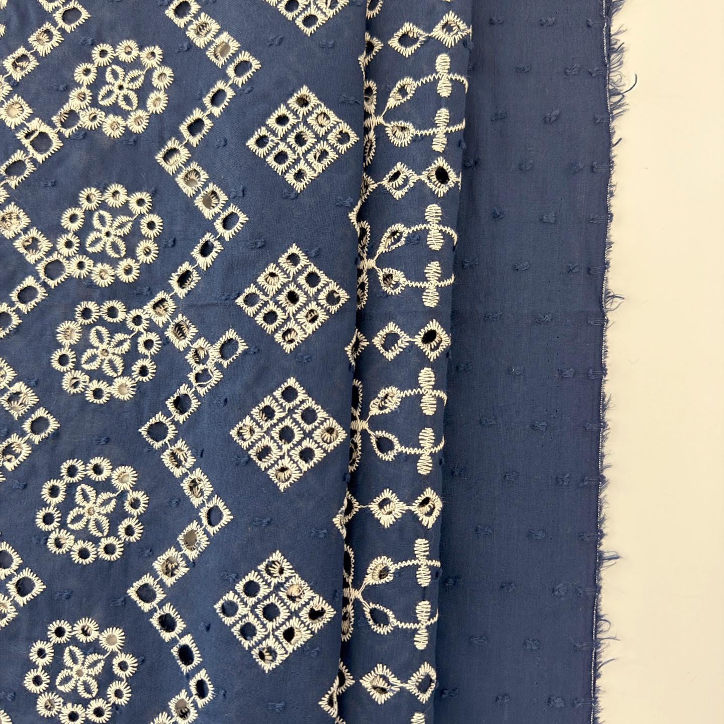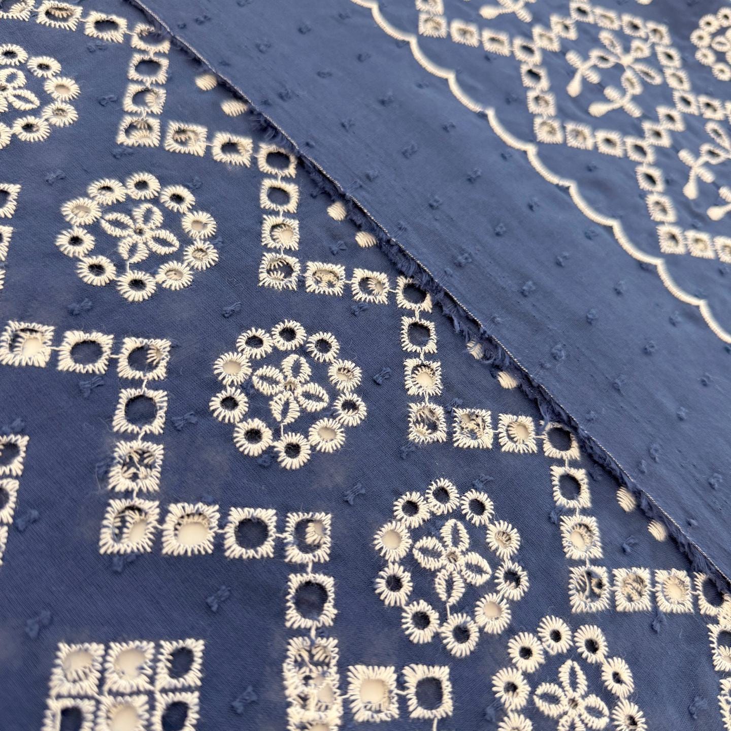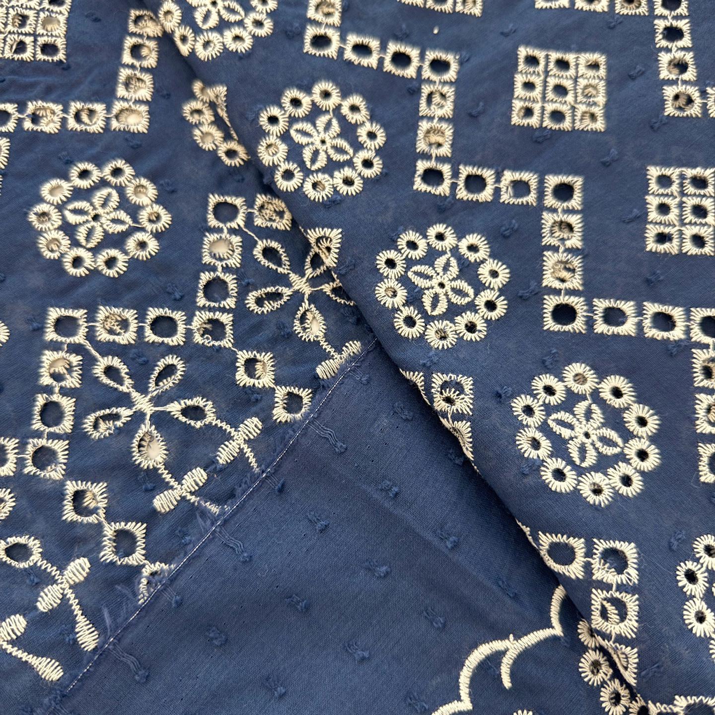Navy Detailed Zigzag Eyelet Fabric – 58" Width – Sold by Yard