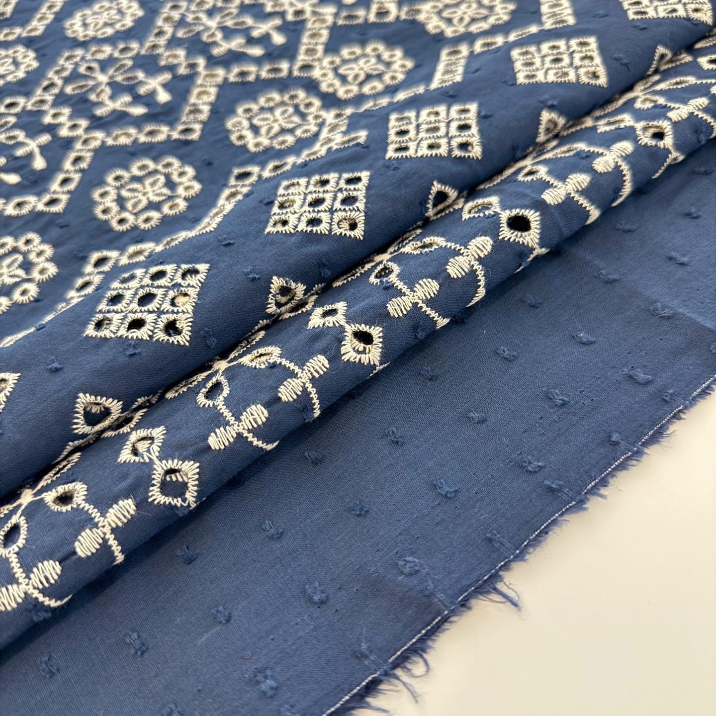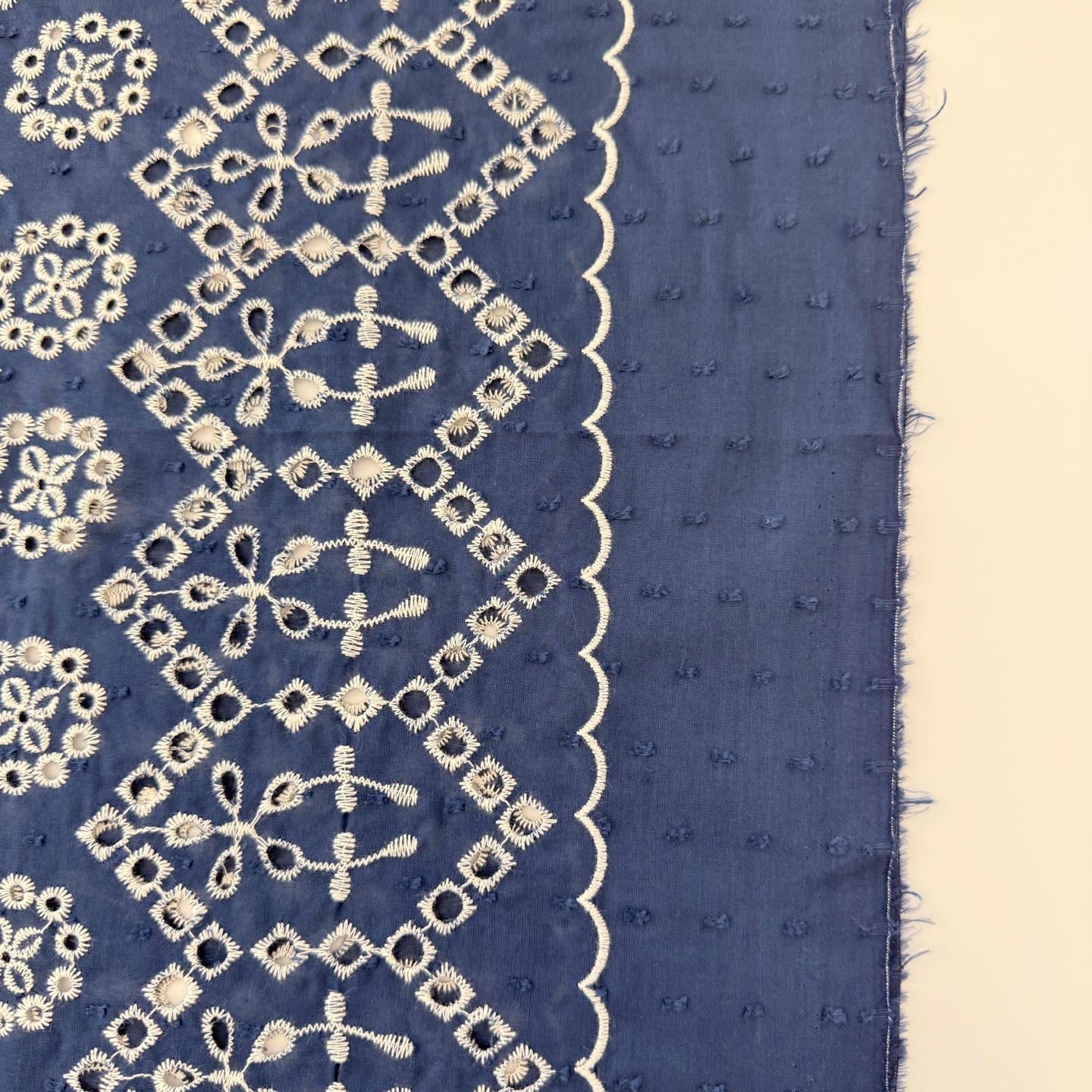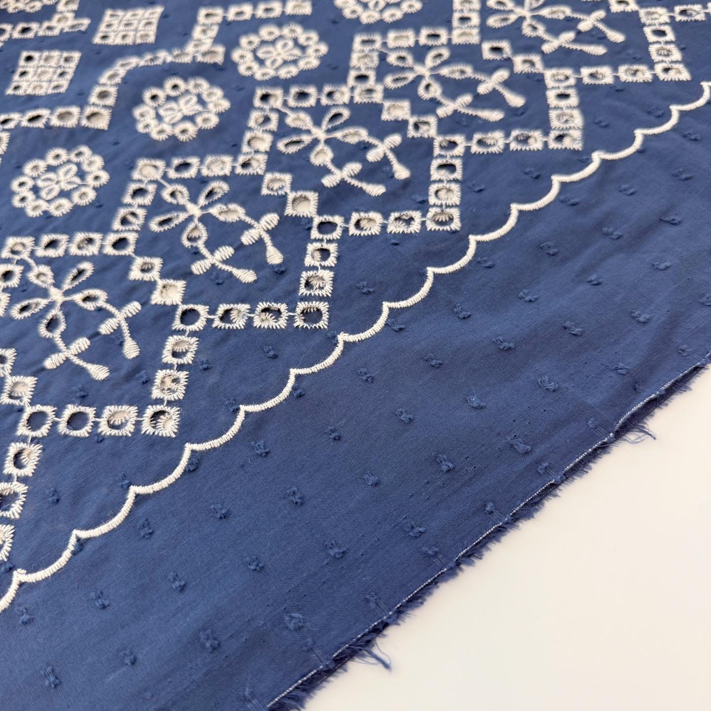 Navy Detailed Zigzag Eyelet Fabric – 58" Width – Sold by Yard