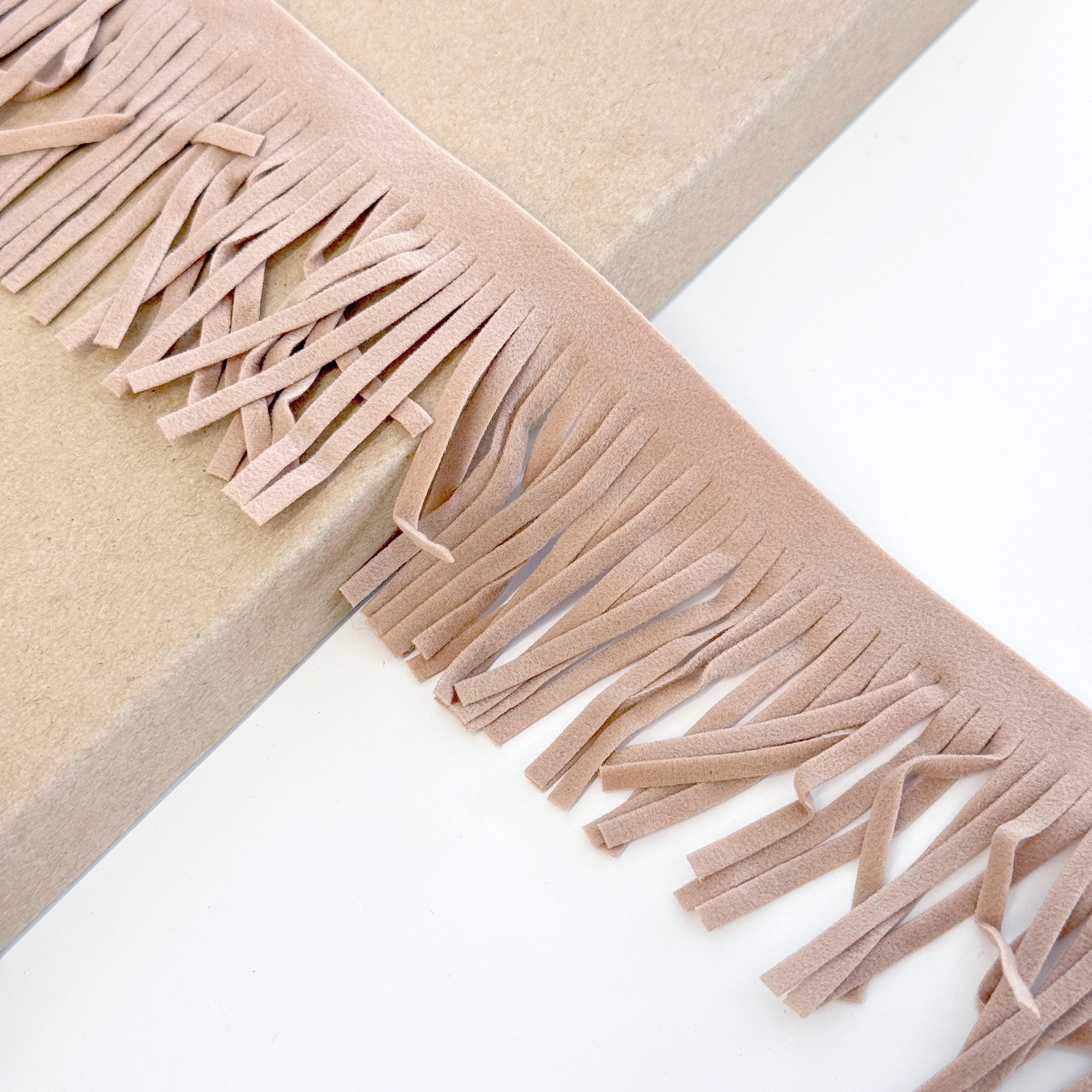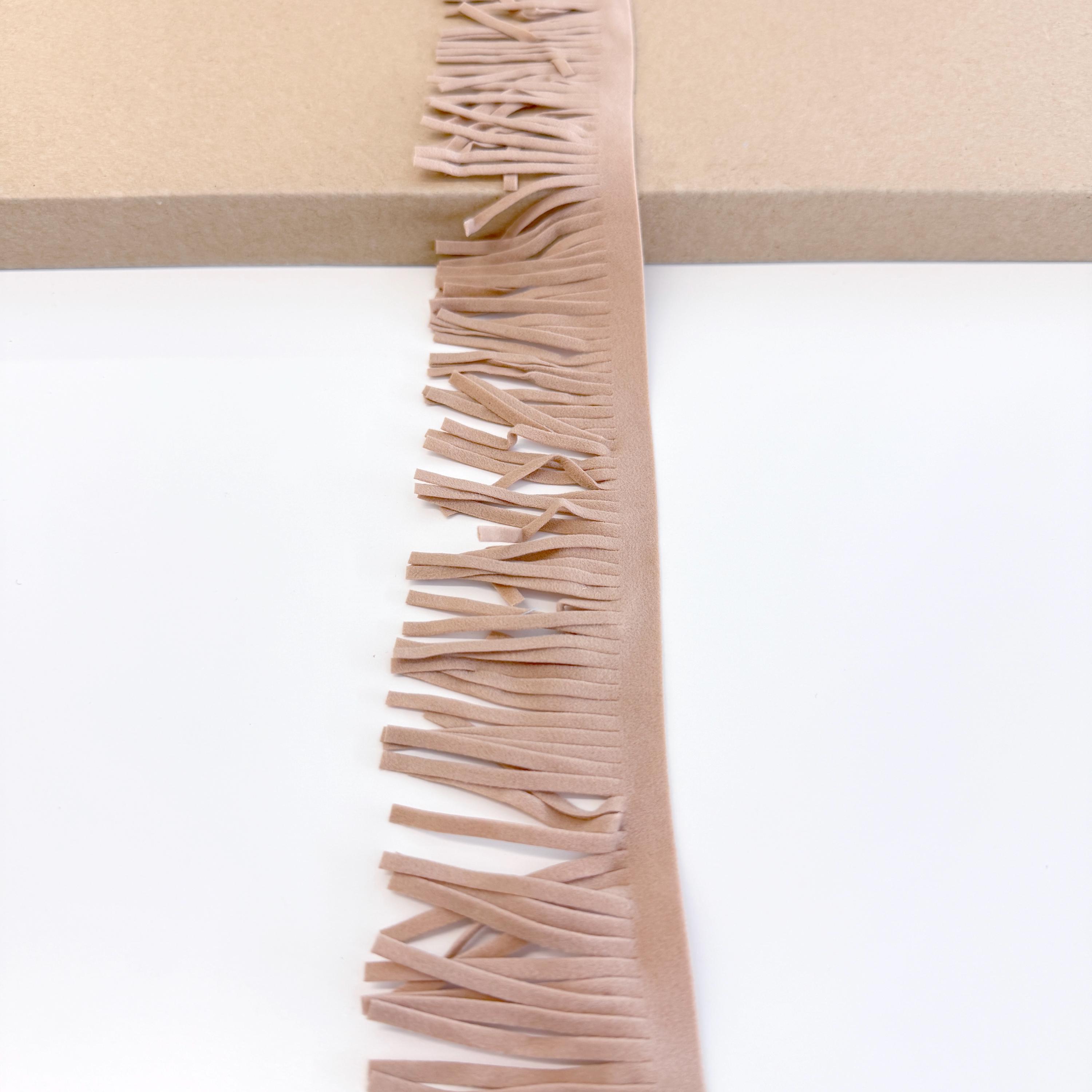 Add a bold, textured accent to your designs with this Brown Fringe Tape. Made from 100% polyurethane, this 2-inch-wide trim offers a rich leather-like appearance that enhances both fashion and décor projects with a modern rustic touch.