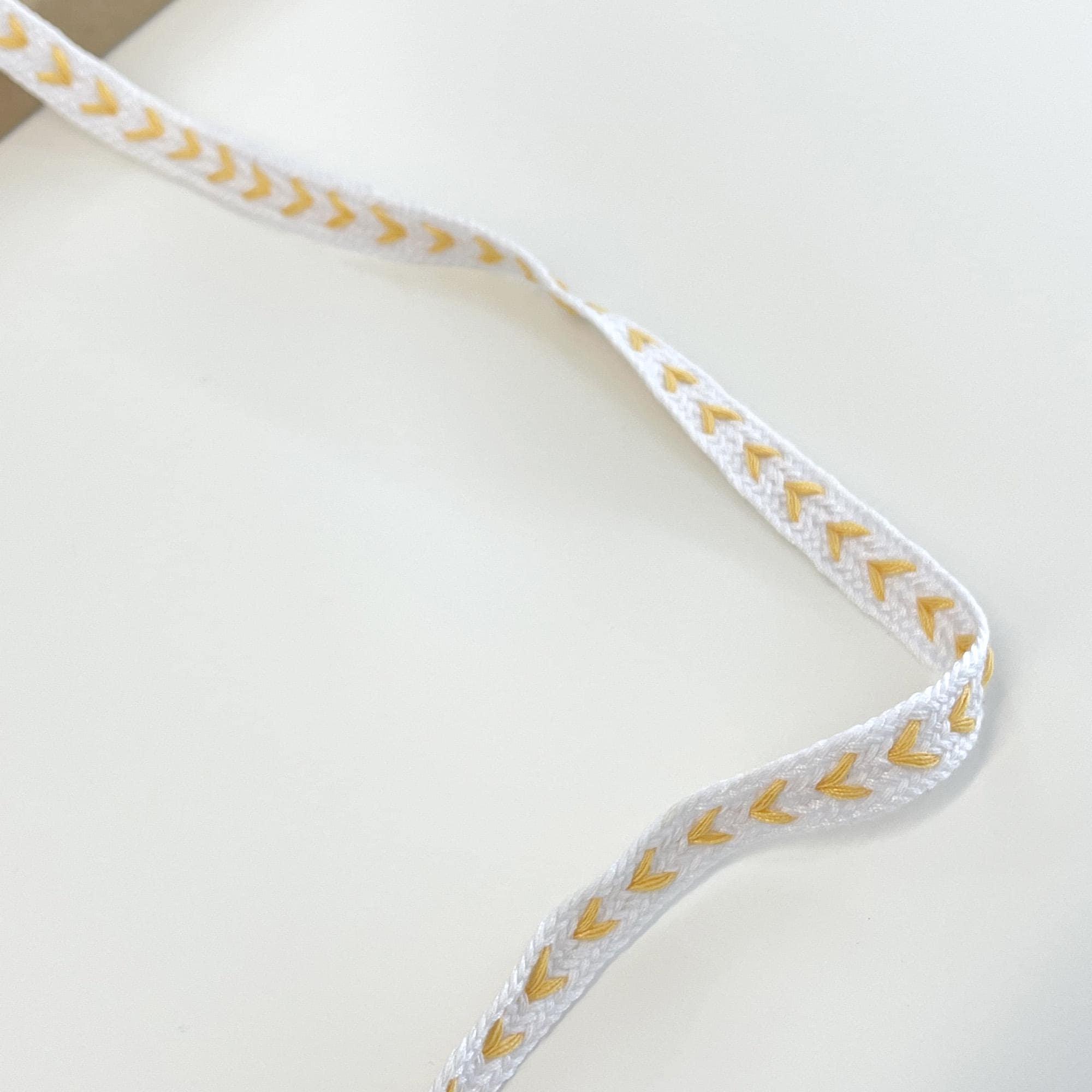 Give your sewing and crafting projects a stylish upgrade with this Yellow V-Shape Braided Drawcord Trim. Its unique V-pattern and smooth braided texture add both structure and visual interest to any design.
