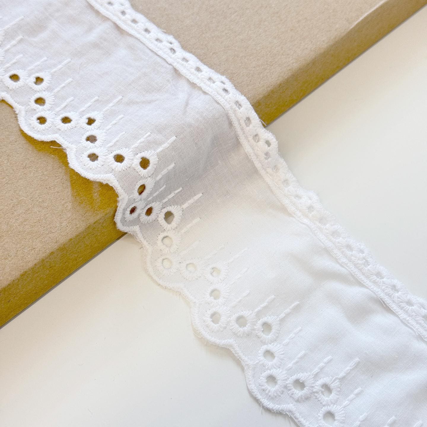 Off White Cotton Scalloped Eyelet Edge Trim, 2 1/2" Width (LT47)