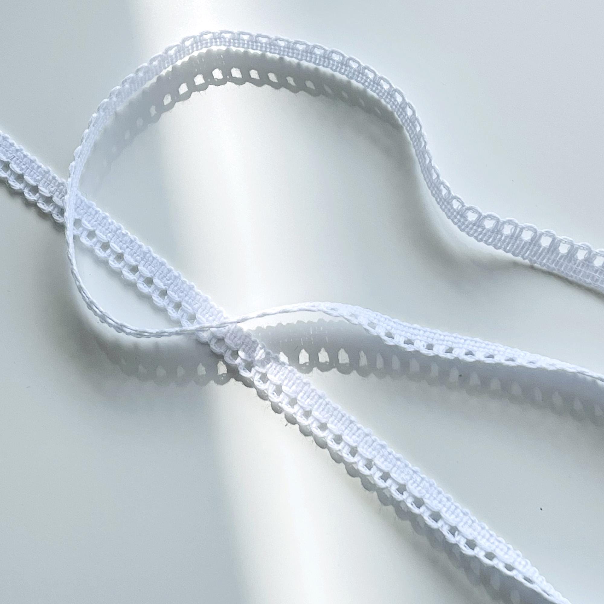 Give your sewing and craft projects a refined touch with this Off White Cotton U-Shaped Fashion Trim. Featuring a delicate U-shaped woven design, this trim adds subtle texture and sophistication to garments, home décor, and handmade accessories.