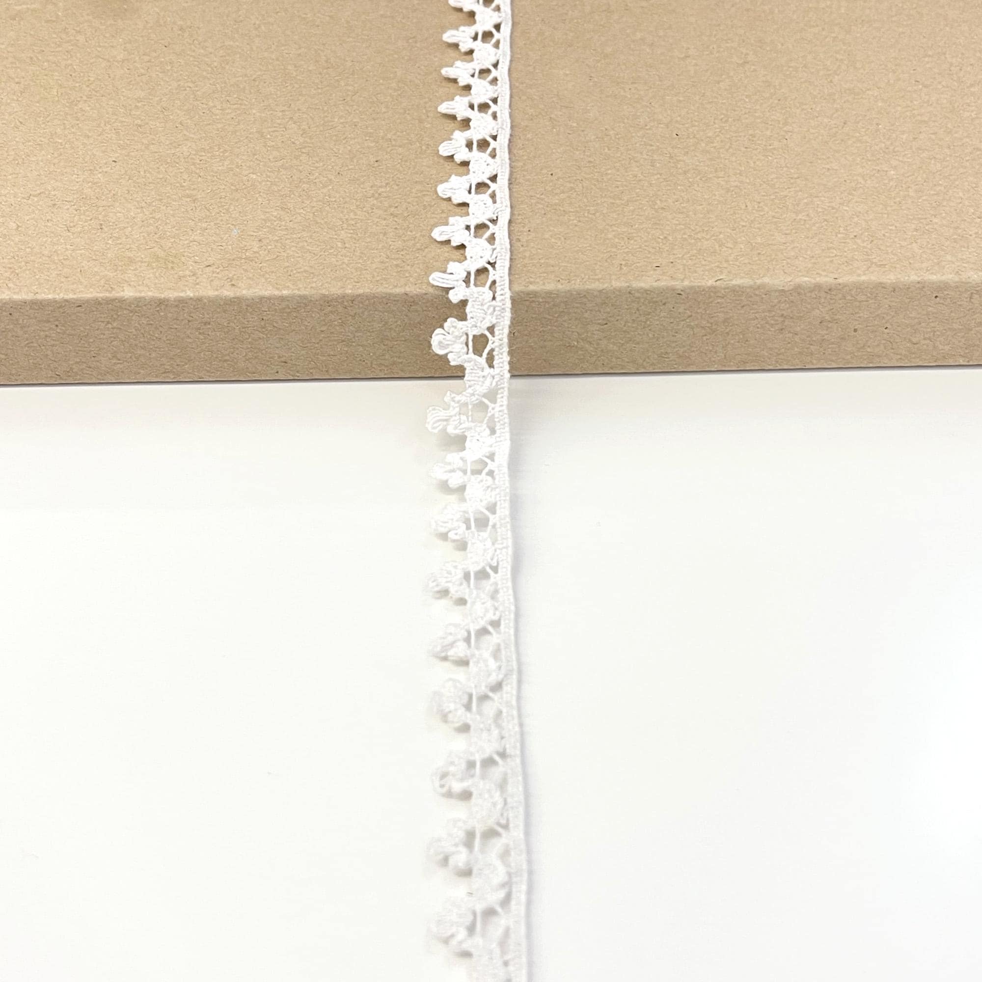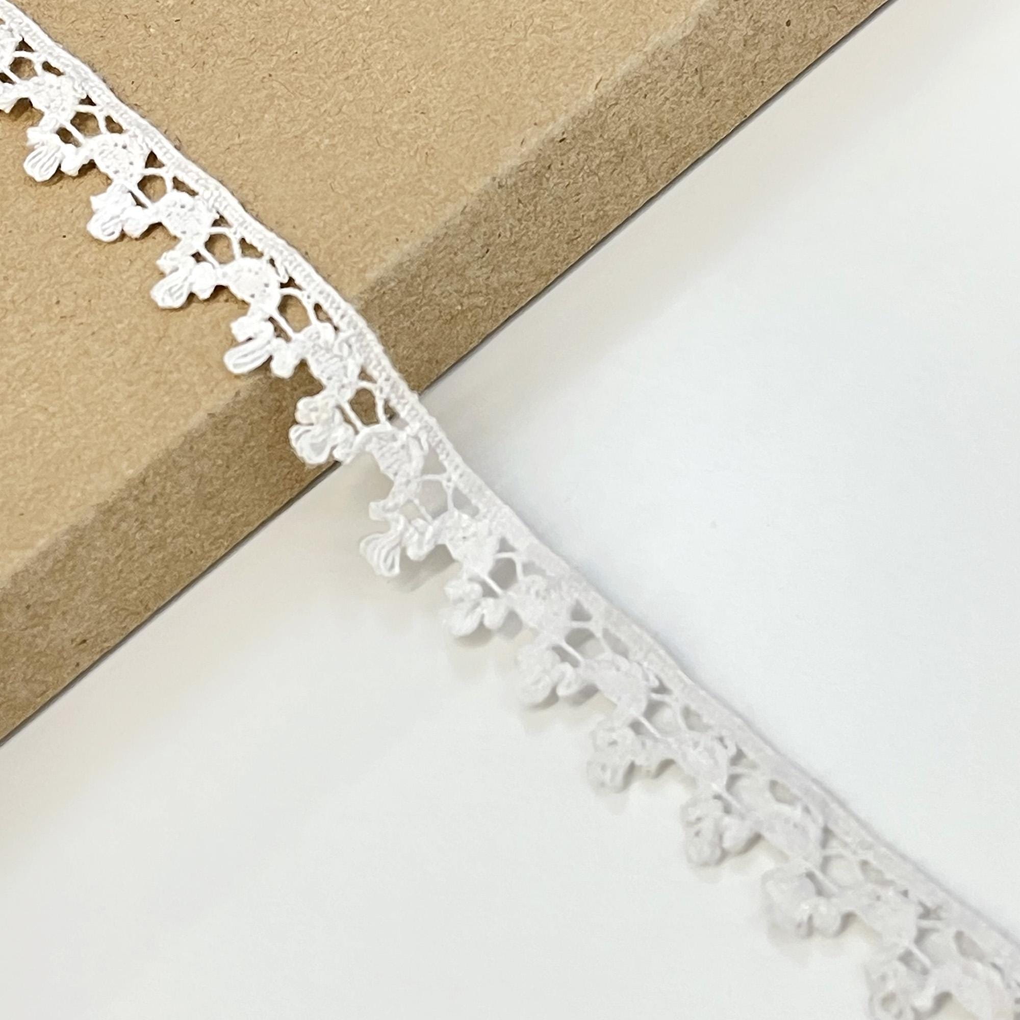 Bring a delicate touch to your projects with this Off White Dainty Lace Trim. Its fine, intricate pattern and soft texture make it perfect for adding subtle elegance to garments, accessories, and décor.