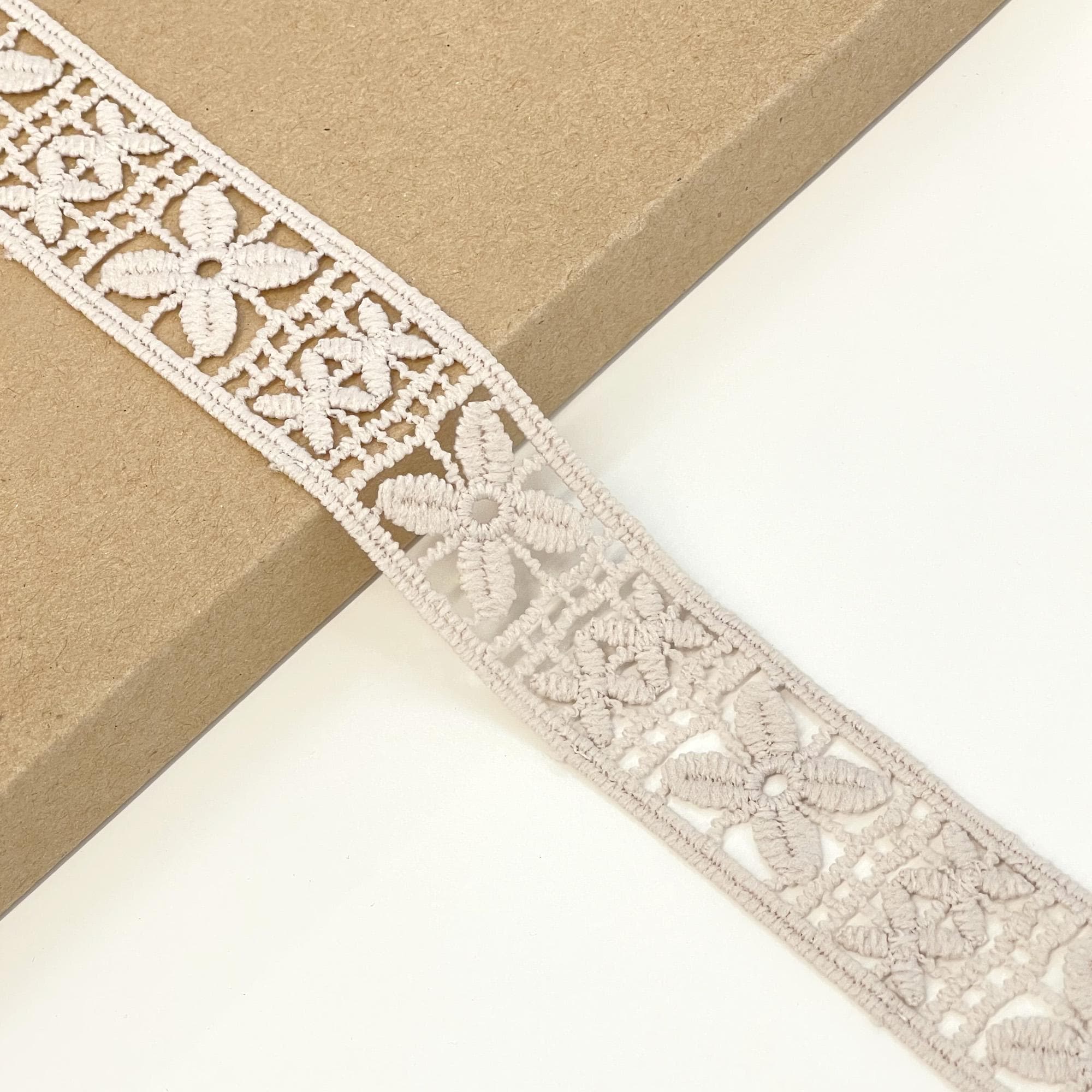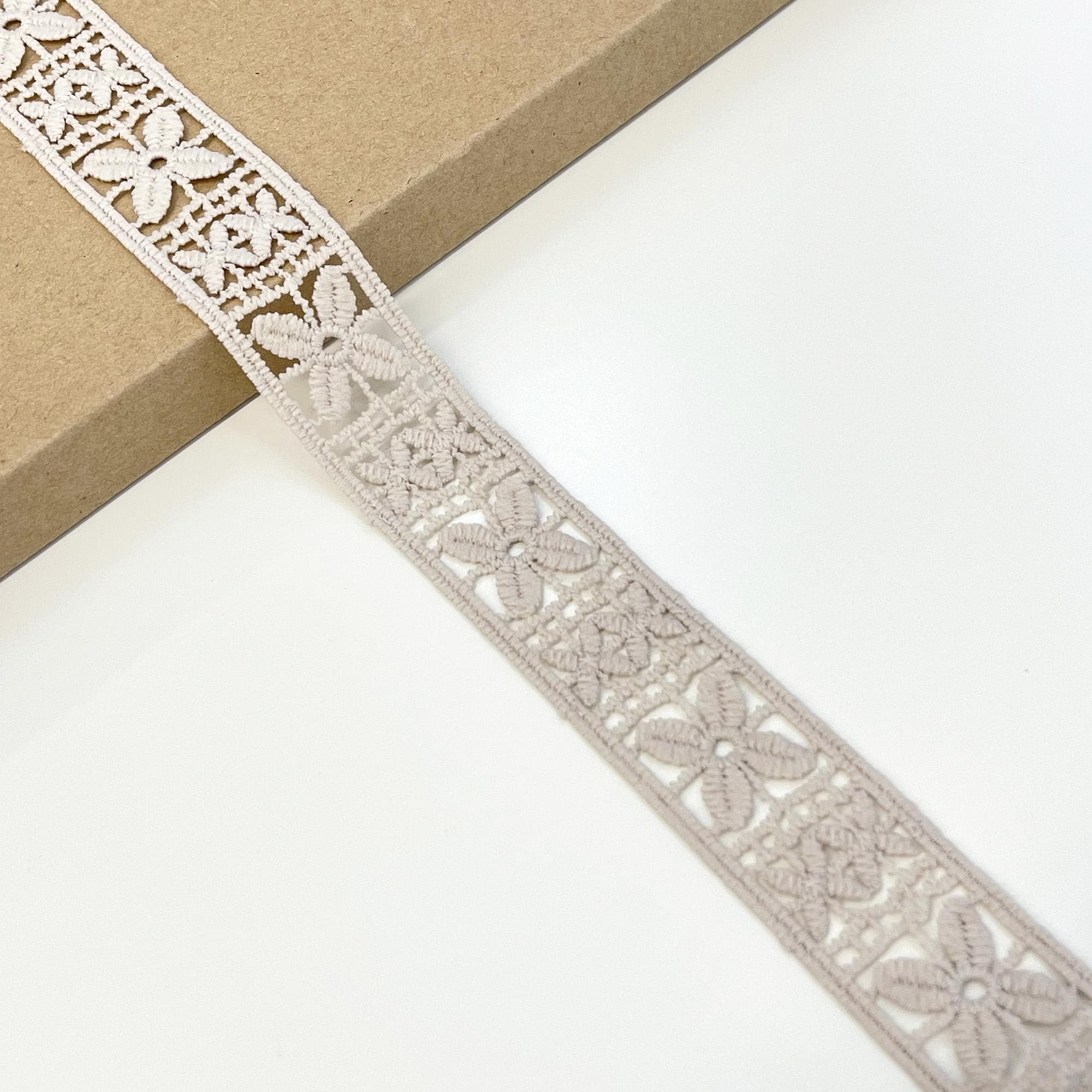 Add a charming, vintage-inspired accent to your creations with this Natural Mosaic Flower Lace Trim. Featuring an intricate floral mosaic design, this trim beautifully combines texture and elegance for both modern and classic projects.
