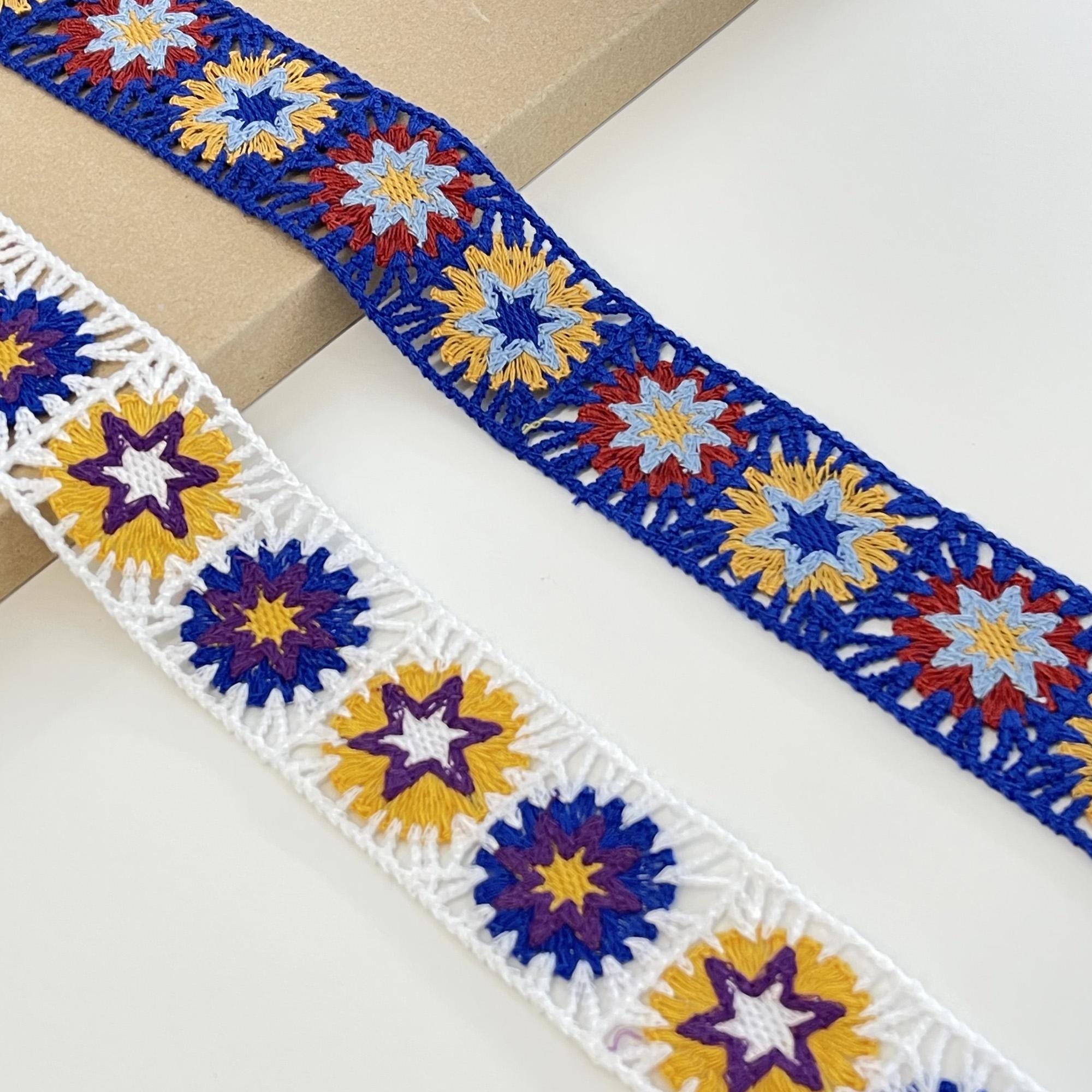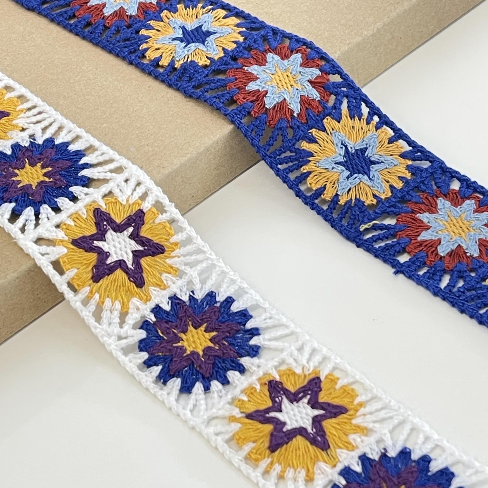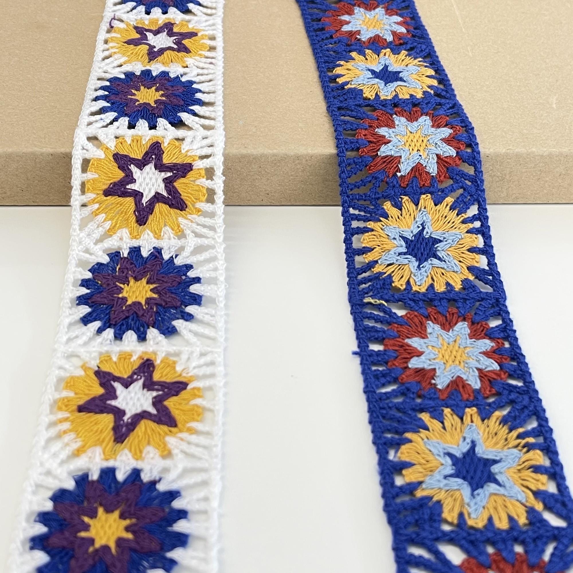 Brighten up your sewing and craft projects with this Colorful Flower Mosaic Lace Trim. Featuring a playful blend of vibrant hues in an intricate floral mosaic pattern, this trim adds cheerful energy and artistic flair to any design.