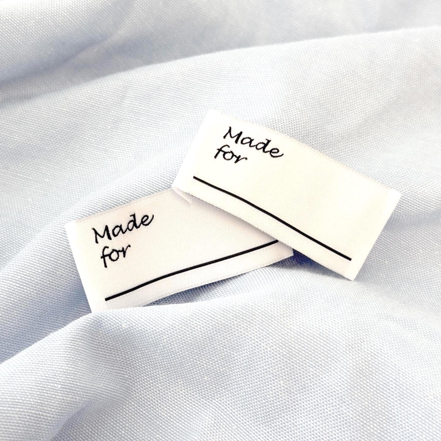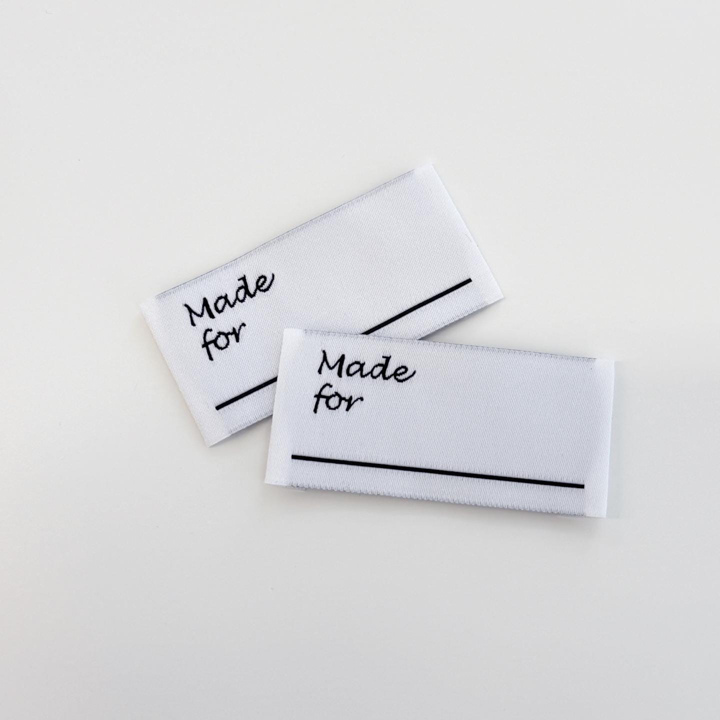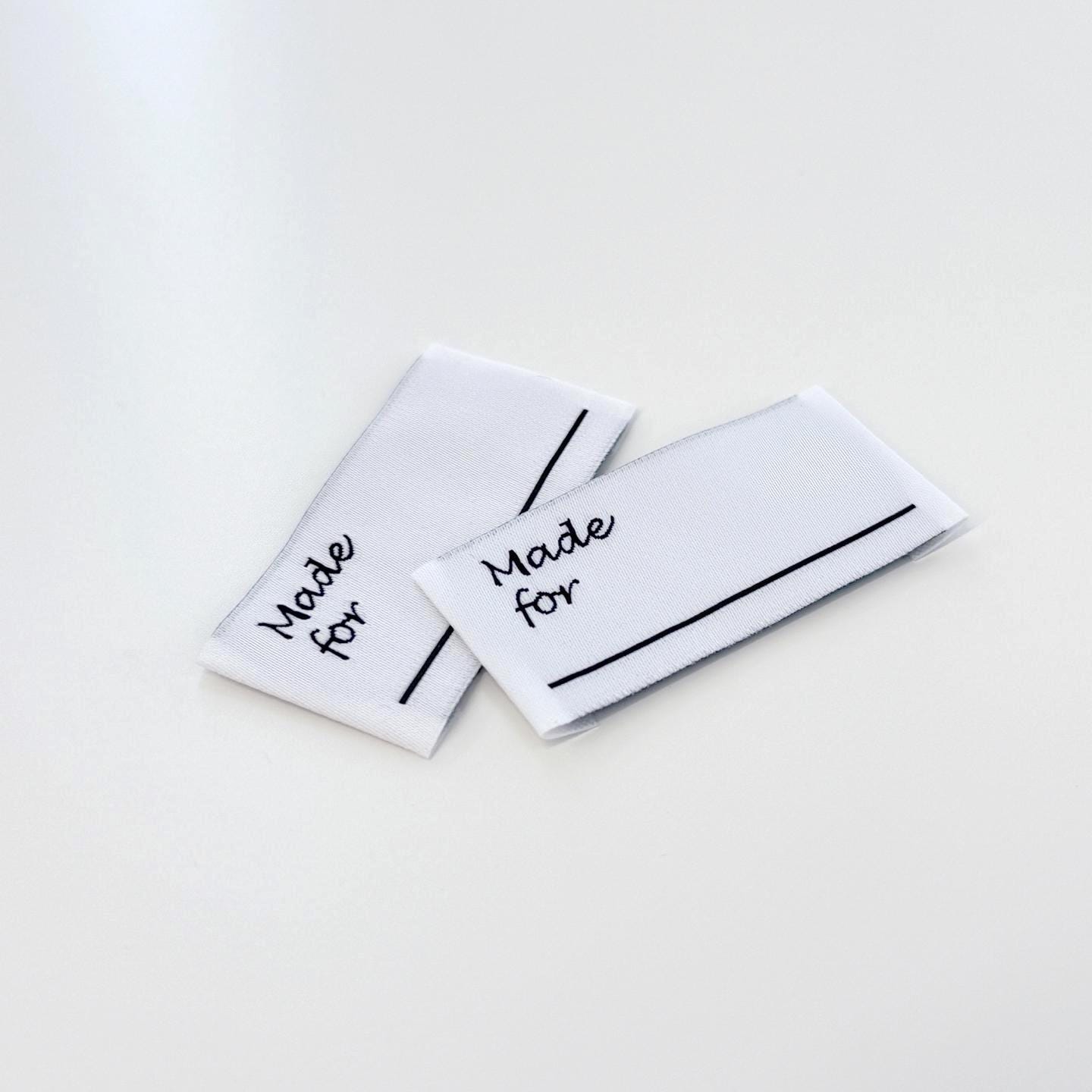 White "Made For ____" Label, Custom Sew-In Tag, Sold per Piece