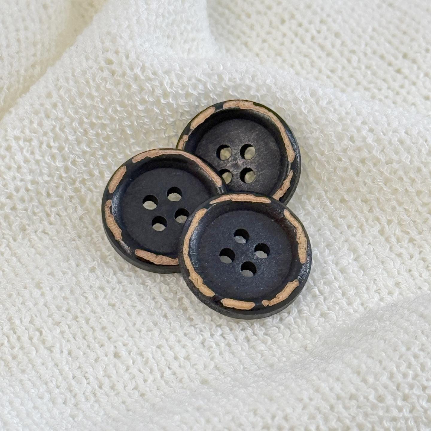 Black Vintage Wood Button 4 Hole with Light Grinded Rim - 32Ligne (20mm), Selling per Piece (Button 3)