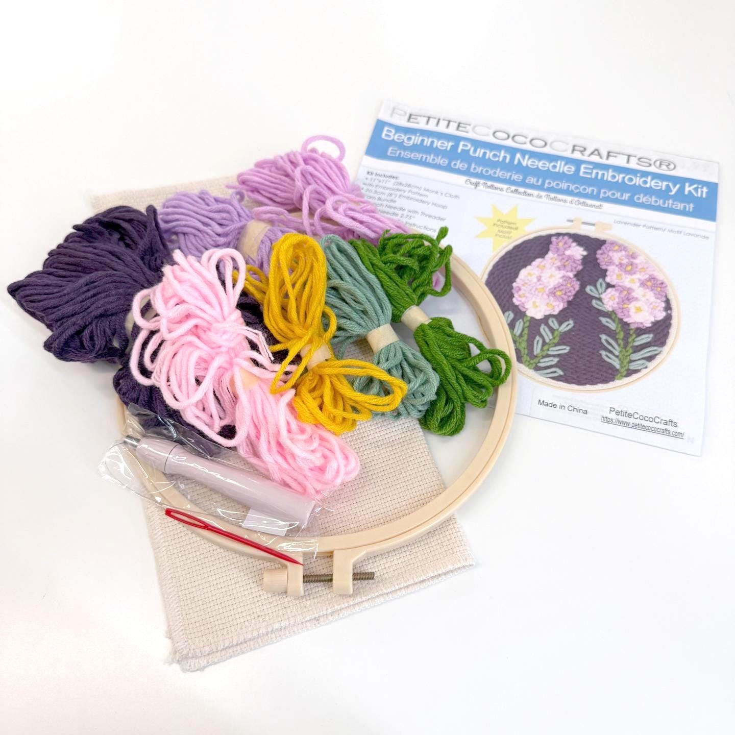 DIY 8" Lavender Punch Needle Embroidery Craft Kit, Includes Instructions & Supplies
