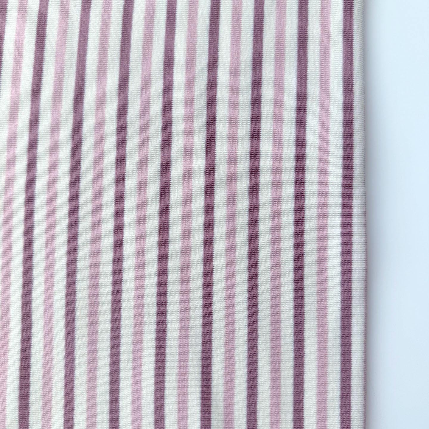Pink/Cream/Mauve Stripe Stretchy 1x1 Rib Knit Fabric – 80" Width – Sold by Yard