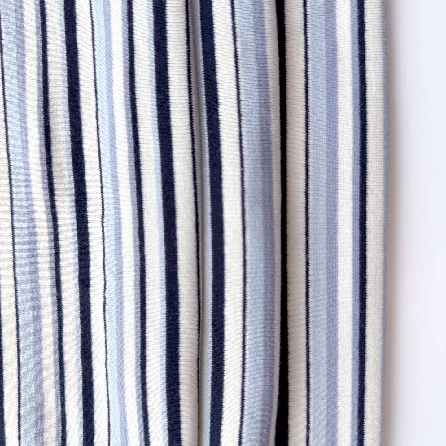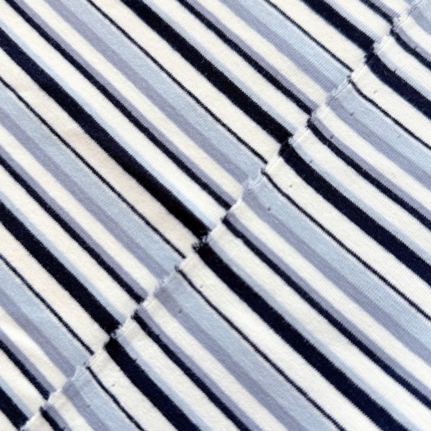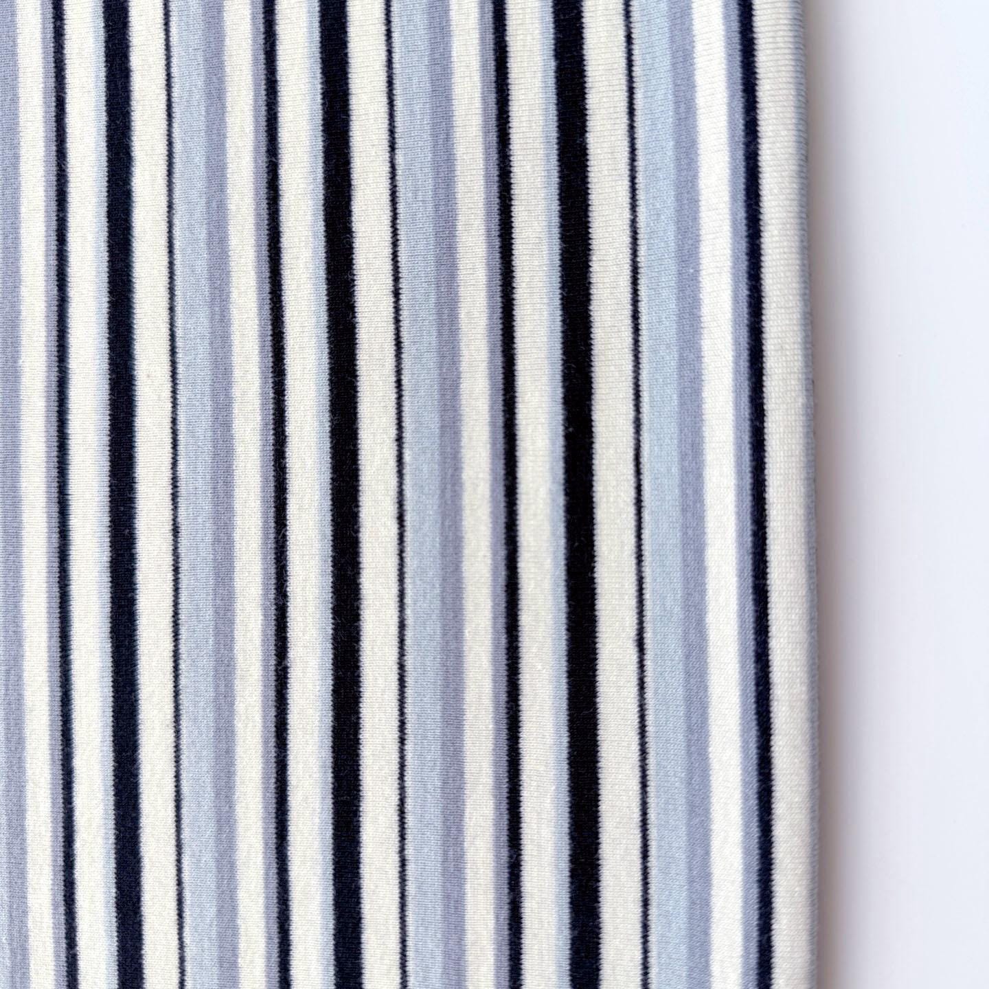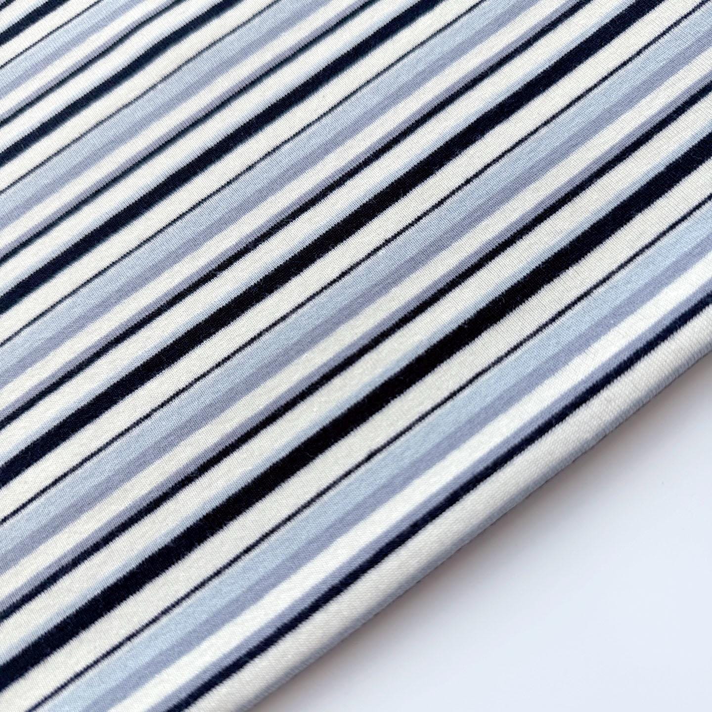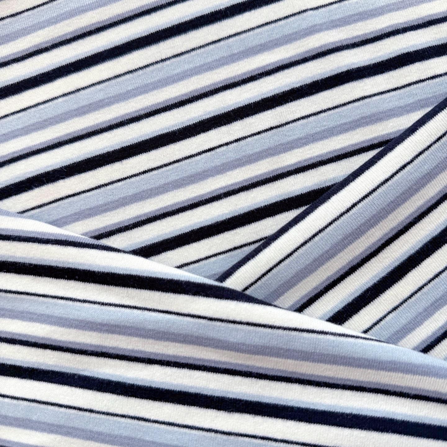 Pale Blue/Dusty Blue/Cream/Black Stripe Stretchy Rib Knit Fabric – 72" Width – Sold by Yard