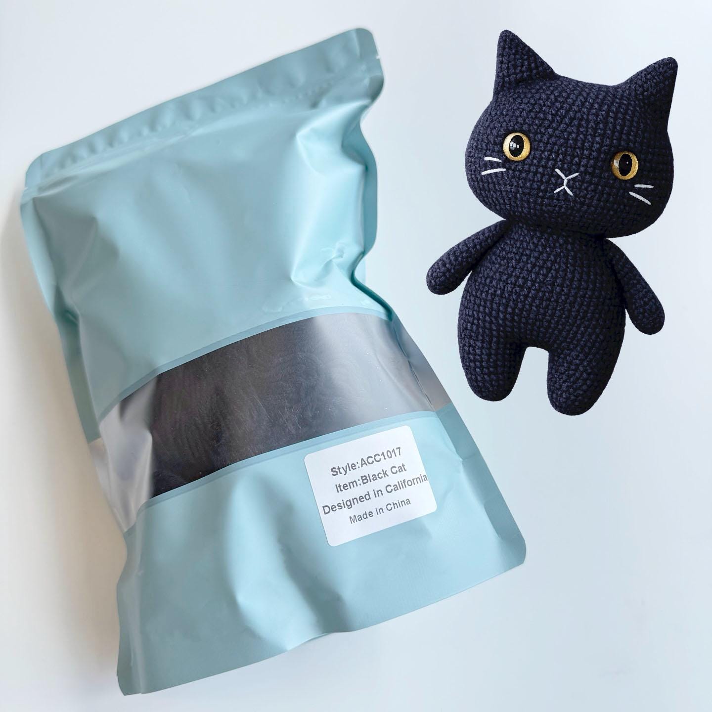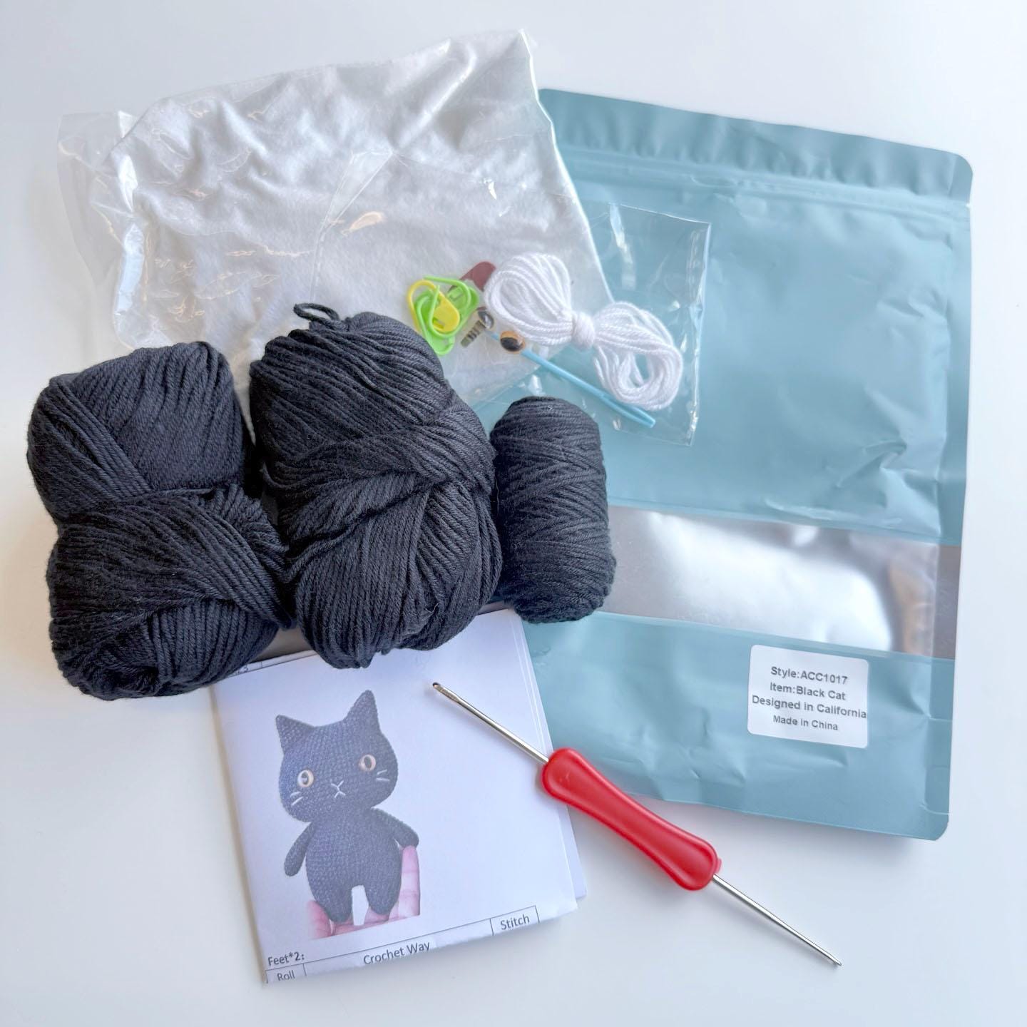 DIY Black Cat Crochet Plushie Craft Kit, Includes Instructions & Supplies